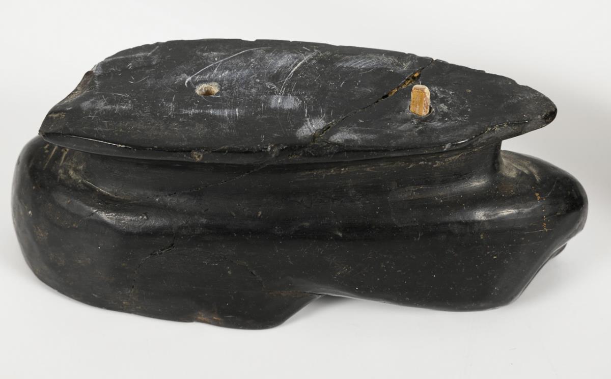Ancient, colored soapstone figure - palace lion on pedestal.