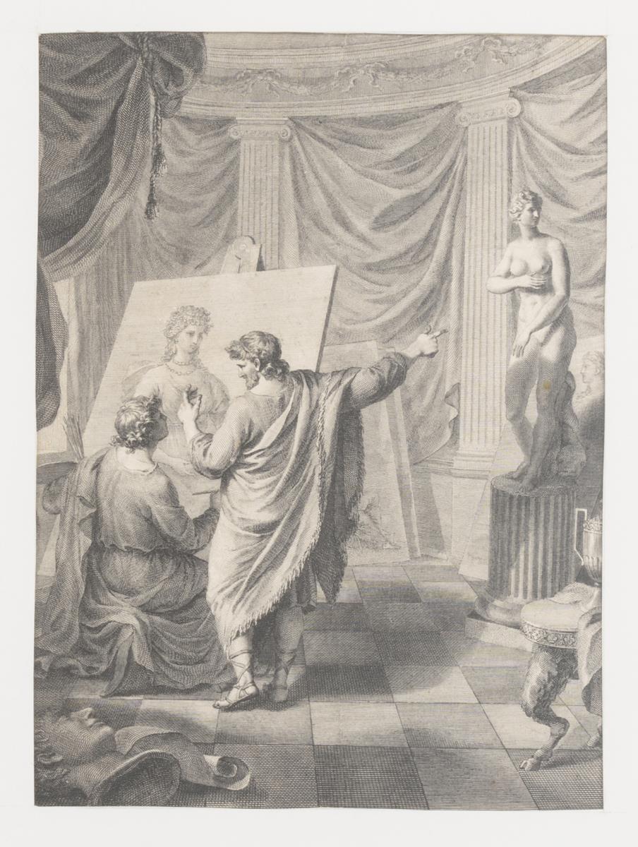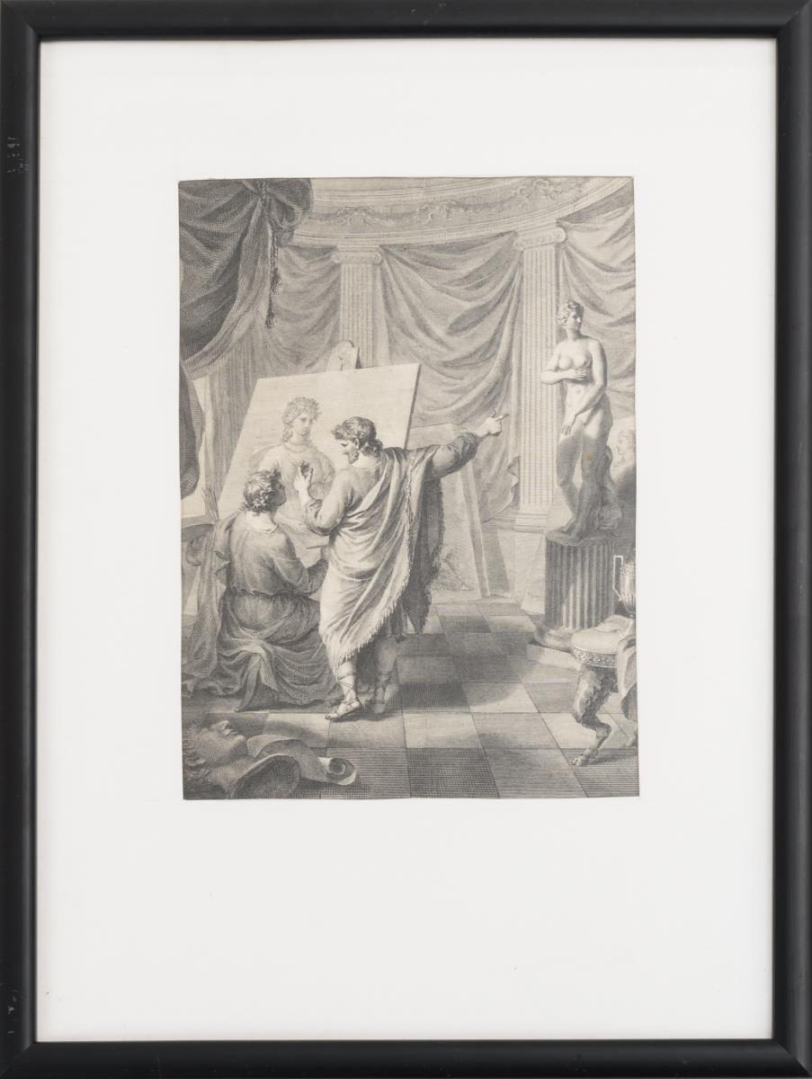 Klassizistisches Künstleratelier mit antikisierenden Figuren.
