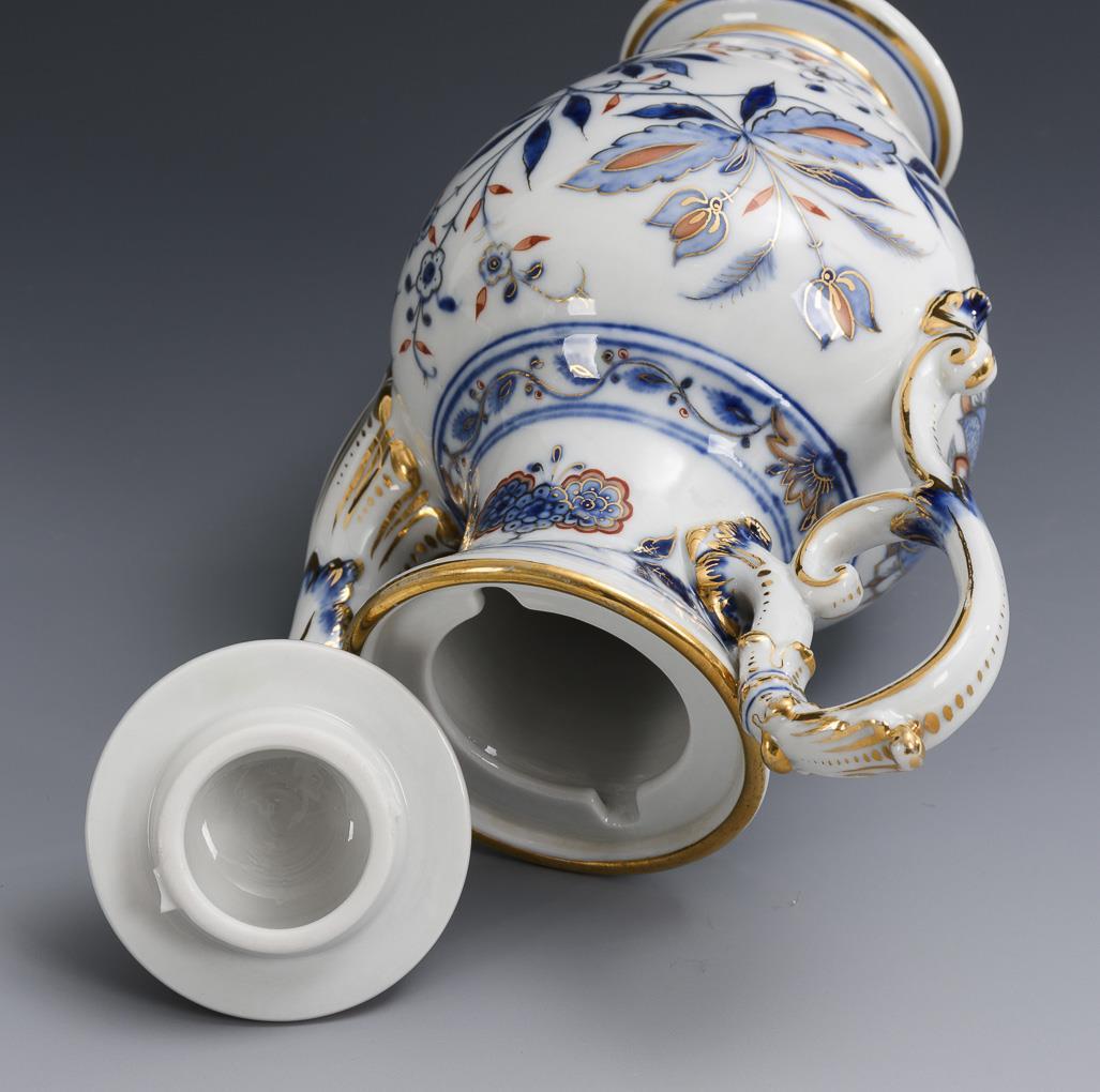 Unglazed blue painting in onion pattern style, polychrome overglaze painting, gold staffage.