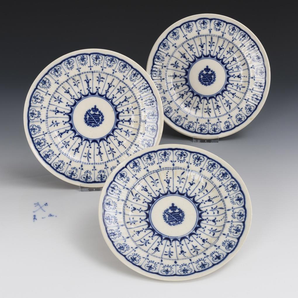 3 rare plates from the wedding service of George II.. Rauenstein.