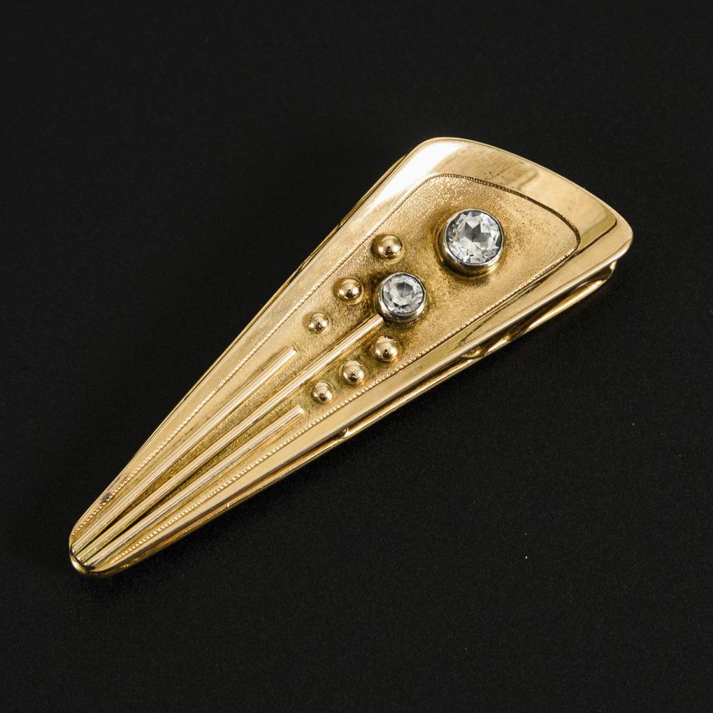 Desiger brooch with colorless stones.