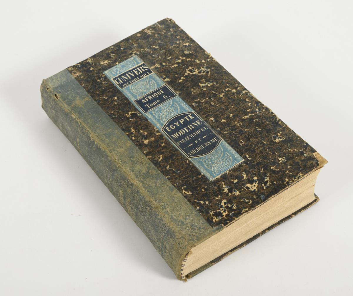 History and description of all peoples written in French; here Egypt (3 volumes in one book) from the conquest by the Arabs to modern times. Numerous illustrations. Brown paperback with light blue cloth spine. Front endpaper slightly torn, slightly browned, some signs of wear, at least 1 illustration cut out, binding with signs of age/use.