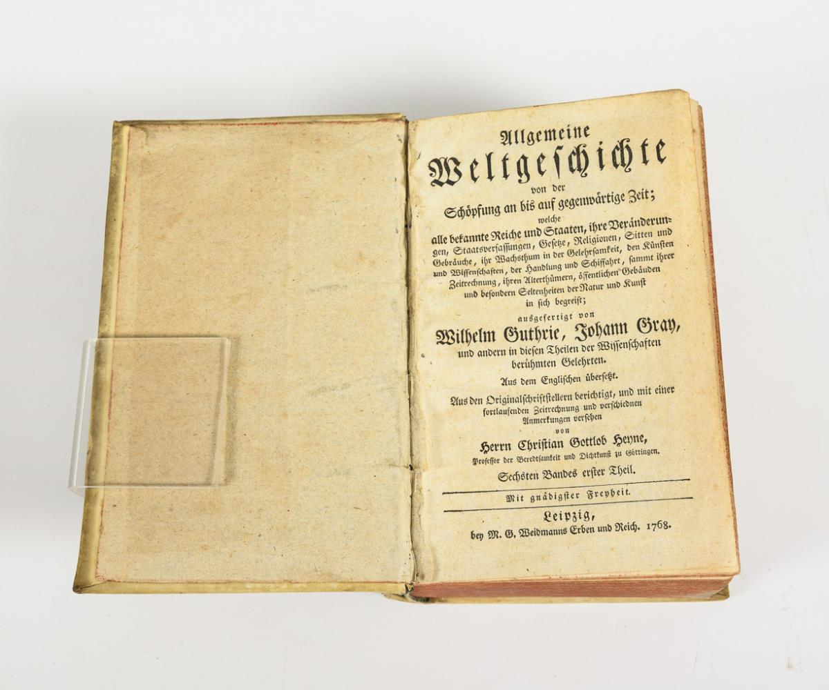 "von der Schöpfung an bis auf gegenwärtige Zeit : which comprehends all known empires and states, their changes, constitutions, laws, religions, manners and customs, their growth in learning, the arts and sciences, commerce and navigation, together with their chronology, their antiquities, public buildings and particular rarities of nature and art".
