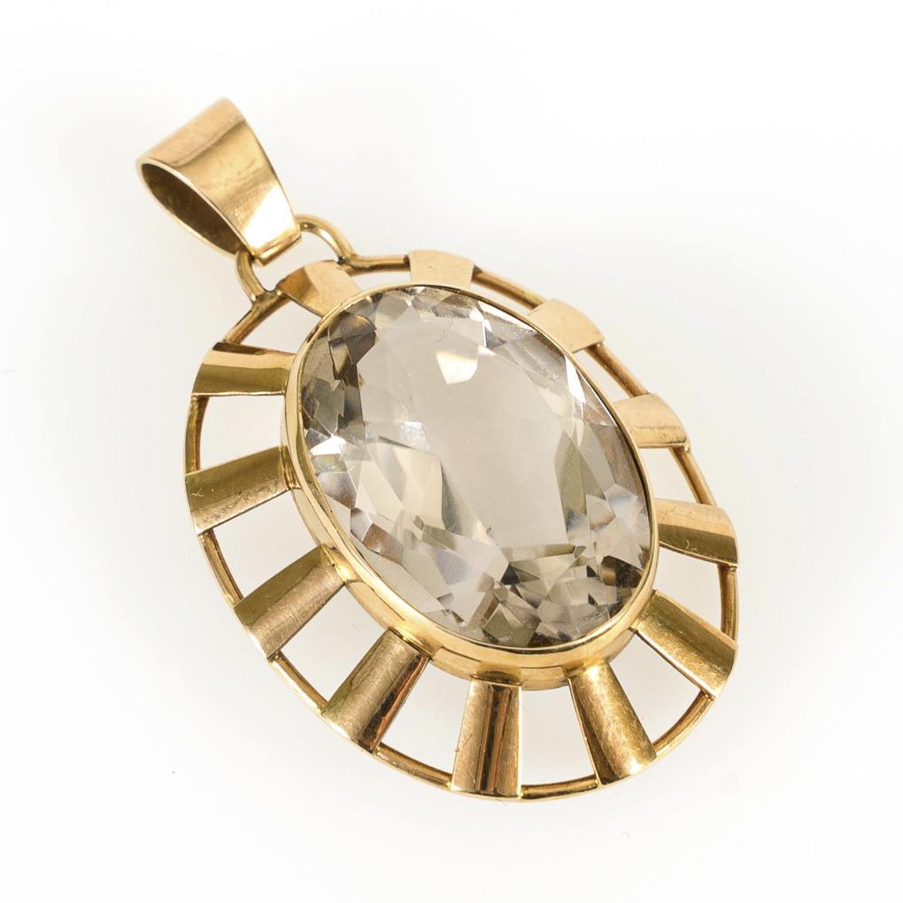 Stamped 585 yellow gold. Stone 2.5 x 1.8 x 1.0 cm. Pendant 4 x 3 cm. 10,8 g.