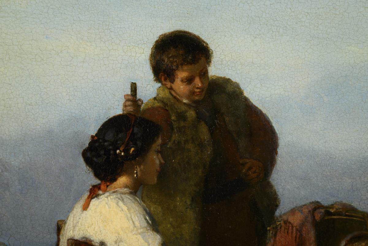 Oil/wood. Monogrammed lower right. 19th century