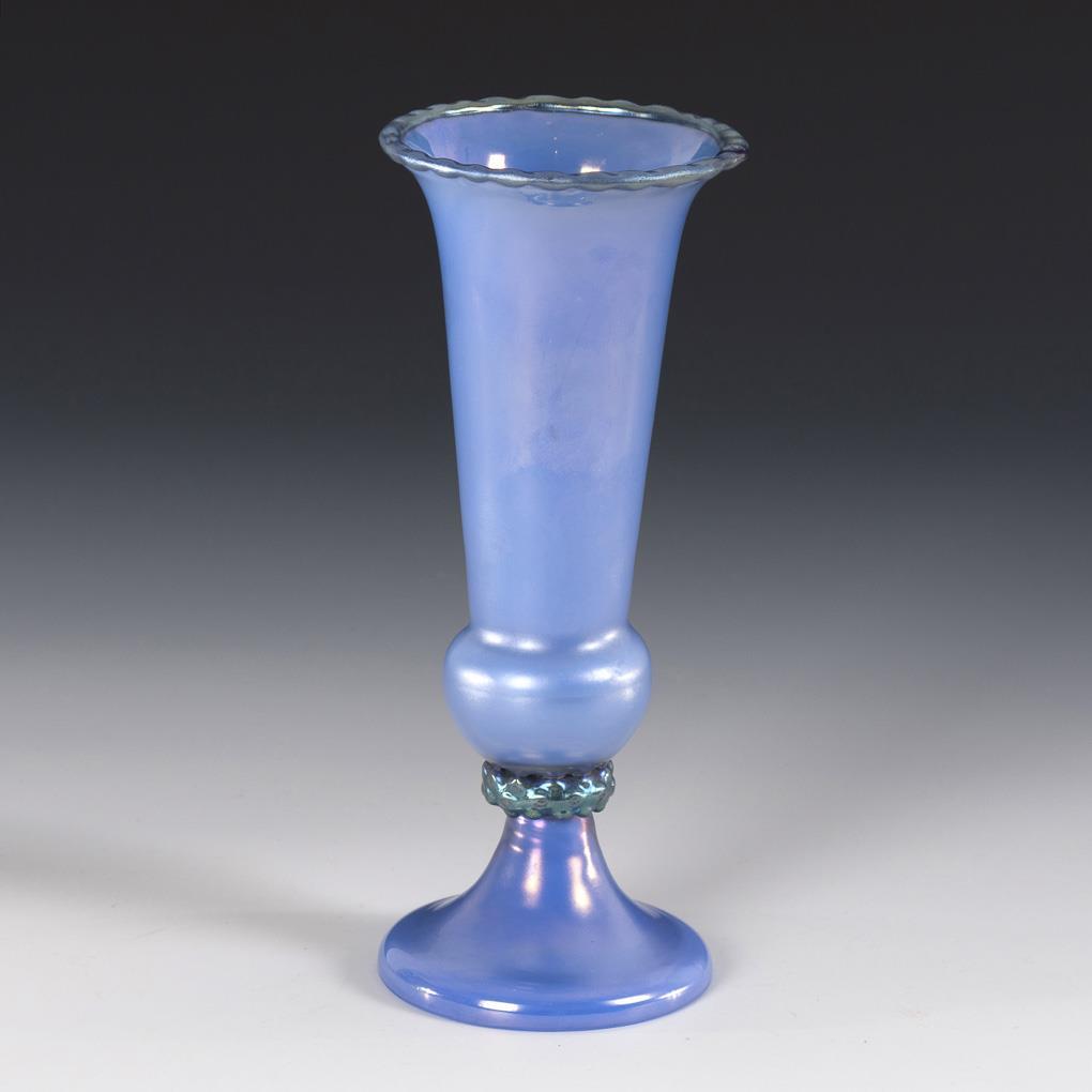 Clear glass with light blue inner rim, iridescent. H 20.5 cm.