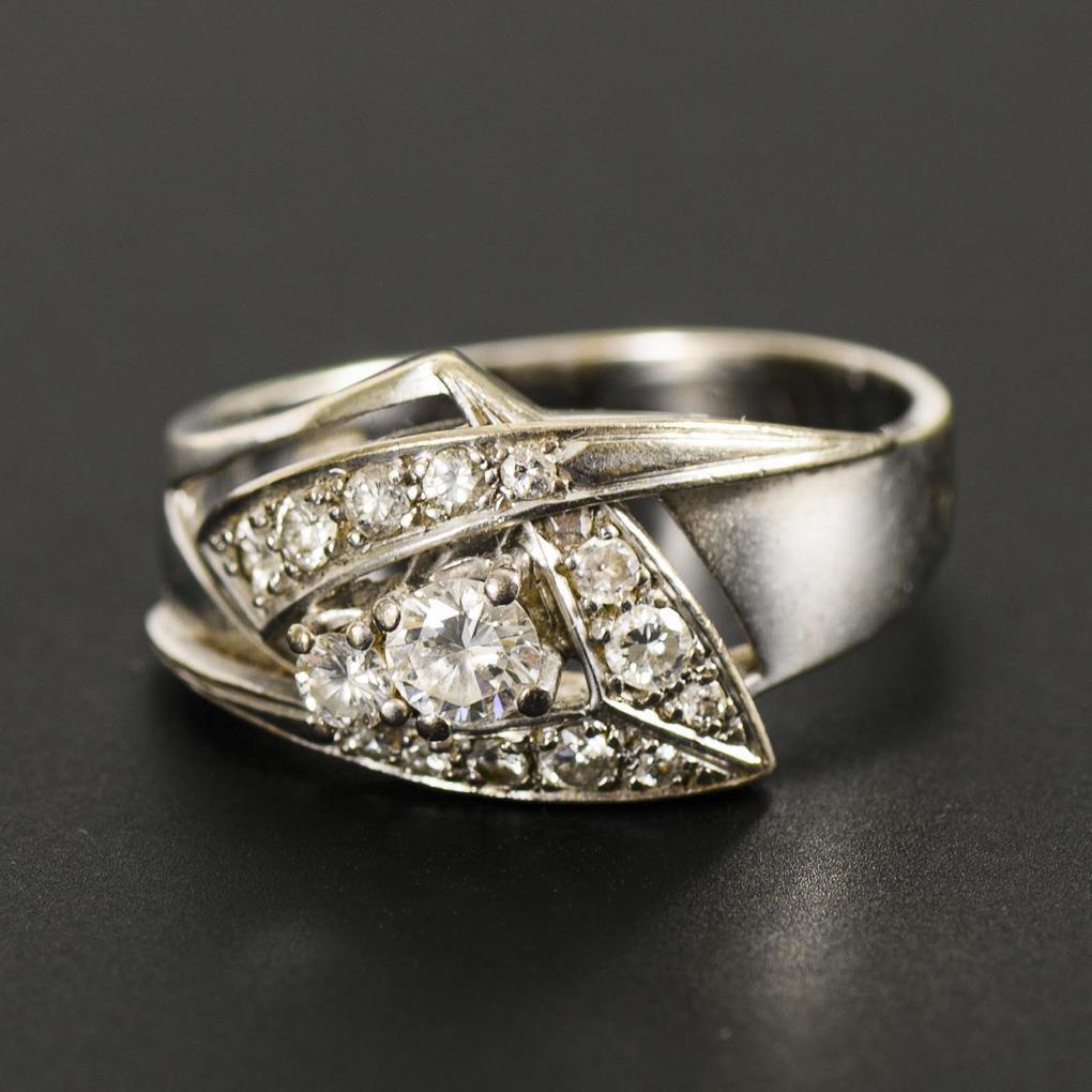 Stamped white gold 585. Ring size 61. 7.1 g.