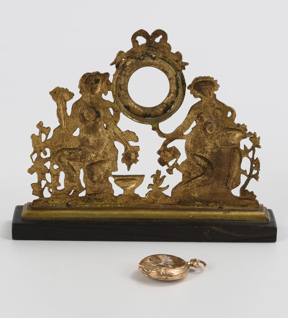 Small gold ladies' pocket watch and neoclassical pocket watch stand.