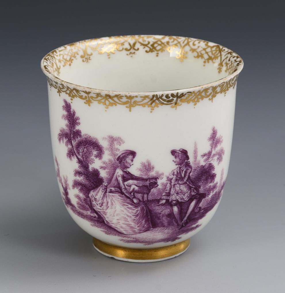 Baroque cup with Watteau painting. Meissen.