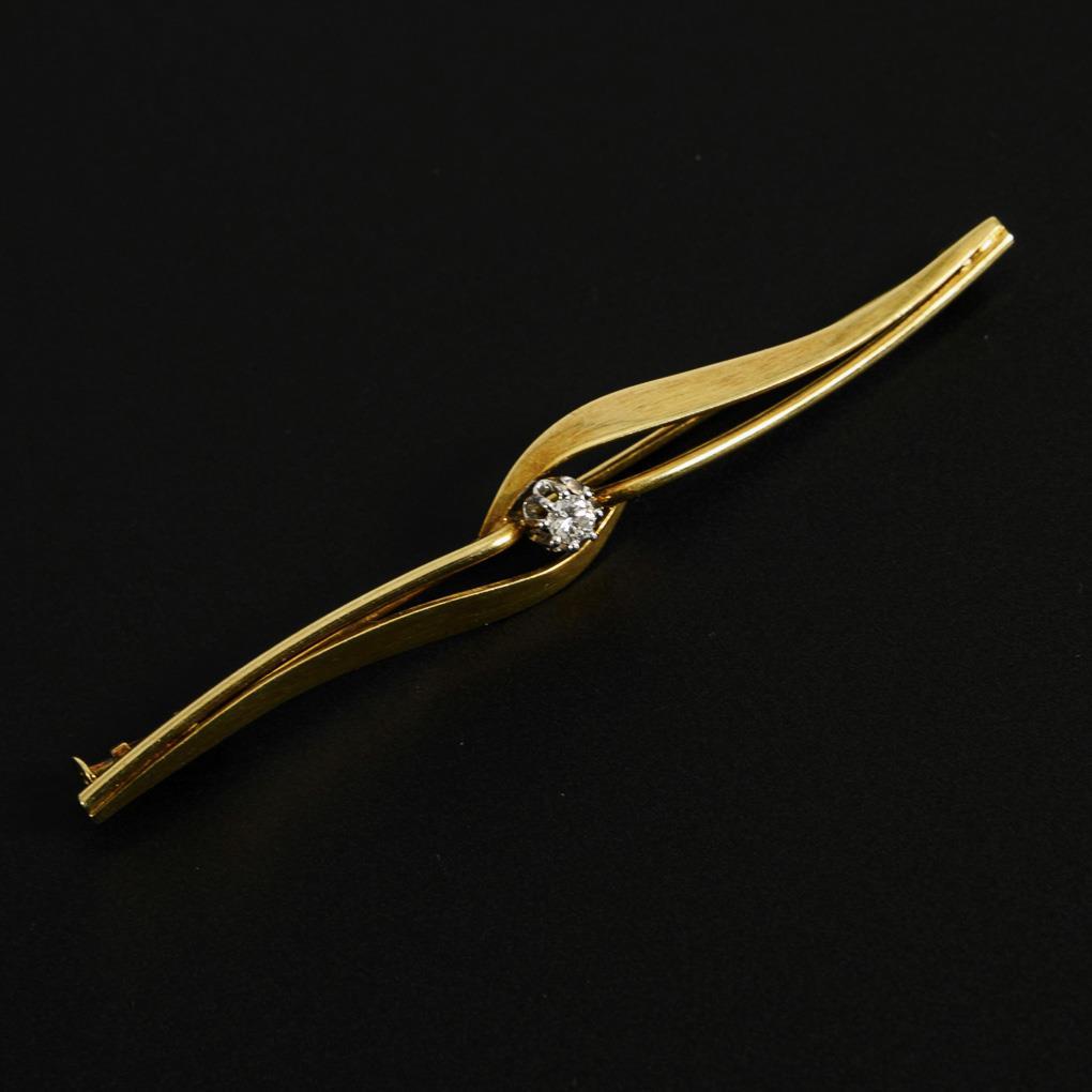 Tested yellow gold/white gold 585. Brilliant approx. 0.10 ct. Brooch L 7 cm. 4,8 g.