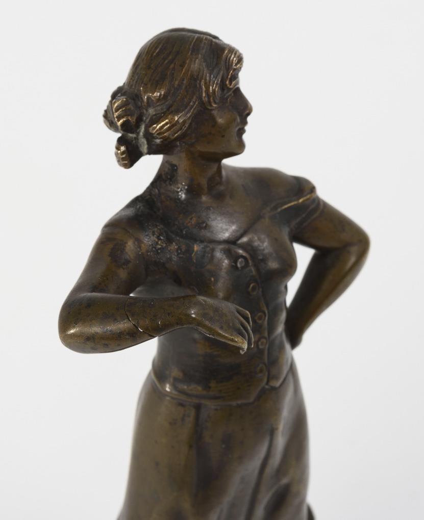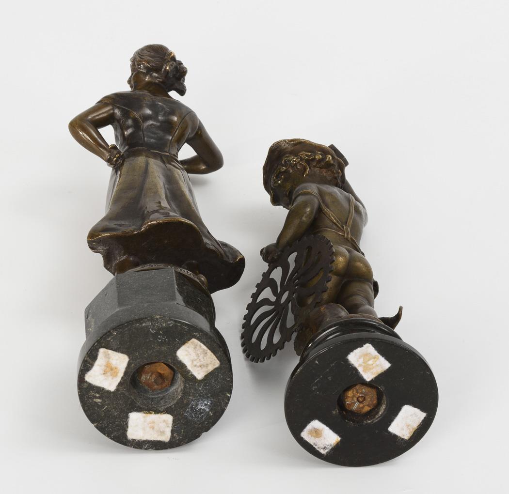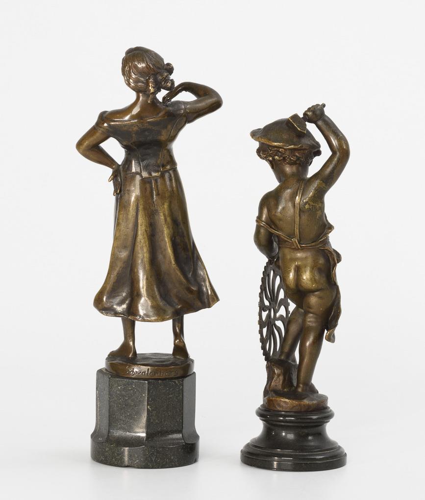 2 bronze statuettes: Young peasant woman and putto allegory of craftsmanship
