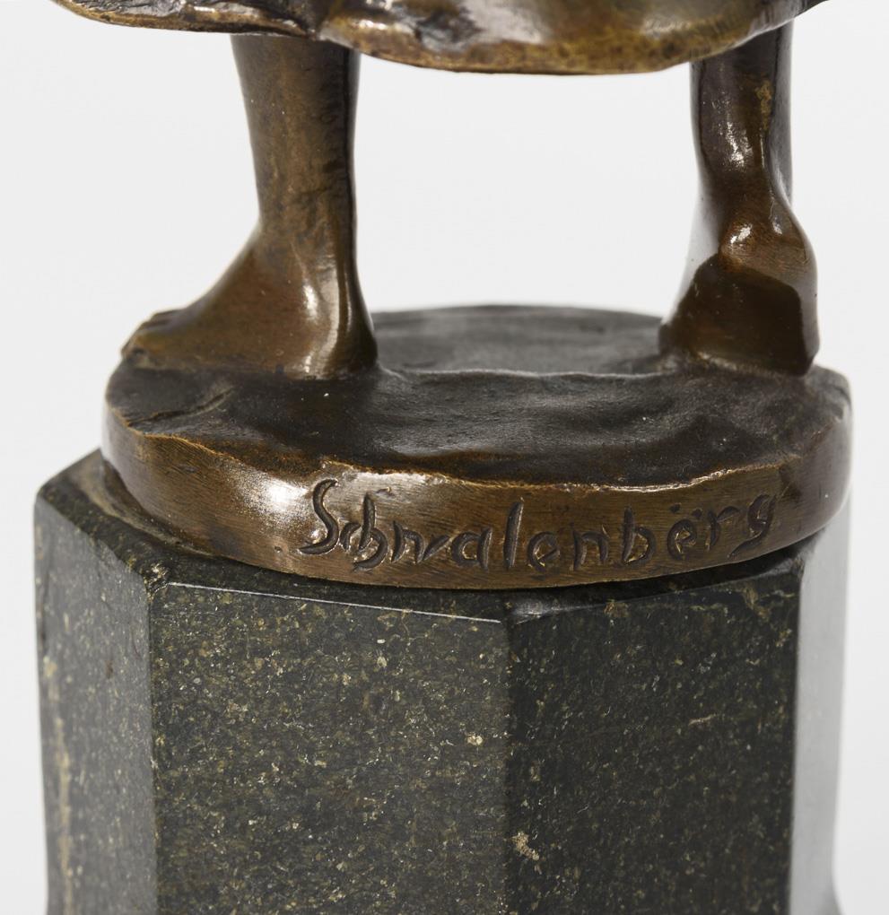 Bronze patinated, serpentine base. H 18 / 23 cm and 17 / 20 cm respectively.