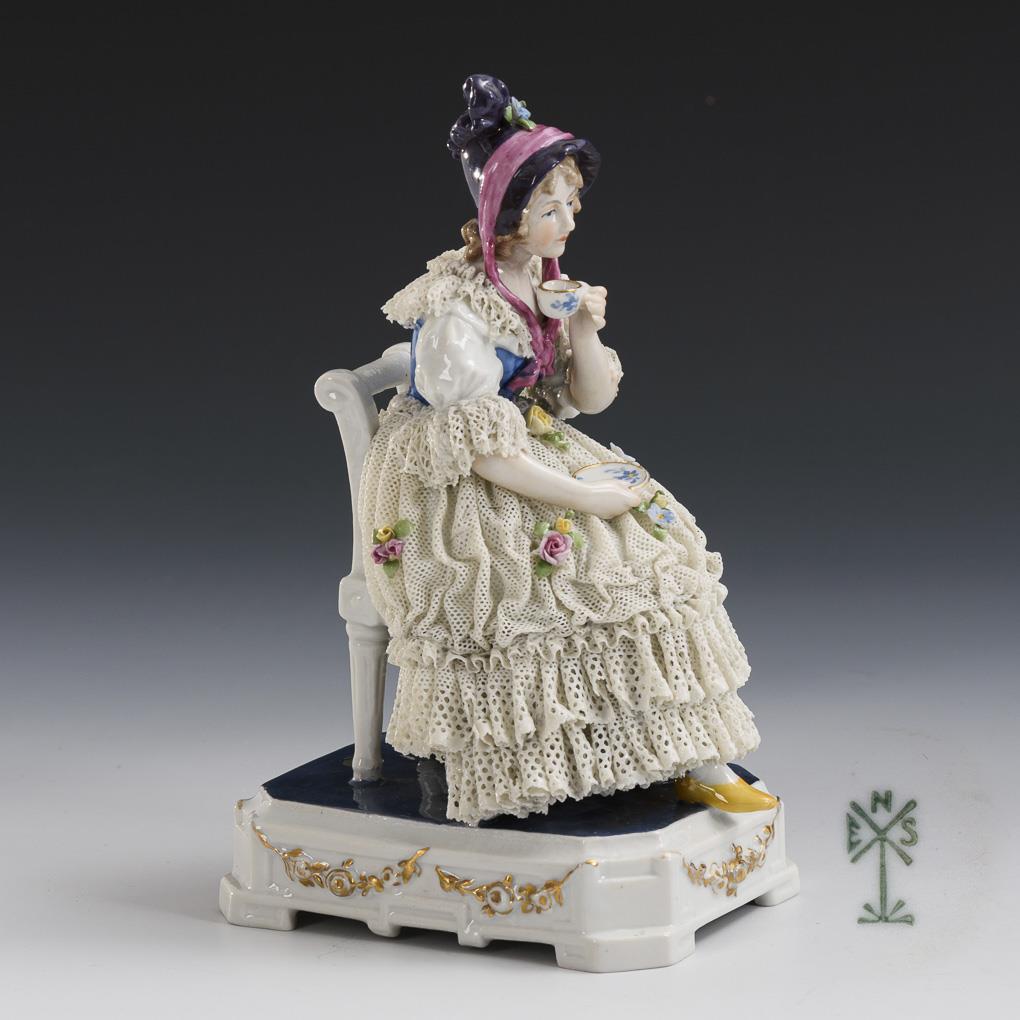 Art Nouveau figure: Lady in a lace dress. ENS.