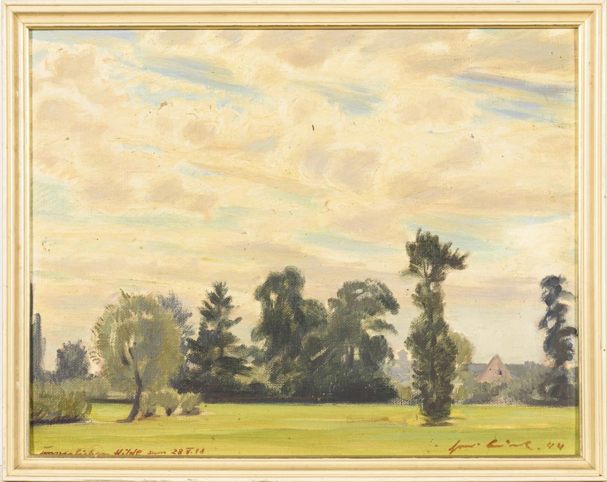 Oil/painting card. Signed lower right, dedication "unserer lieben Hilde zum 28. V. 48" lower left, inscribed/titled verso. (19)44.