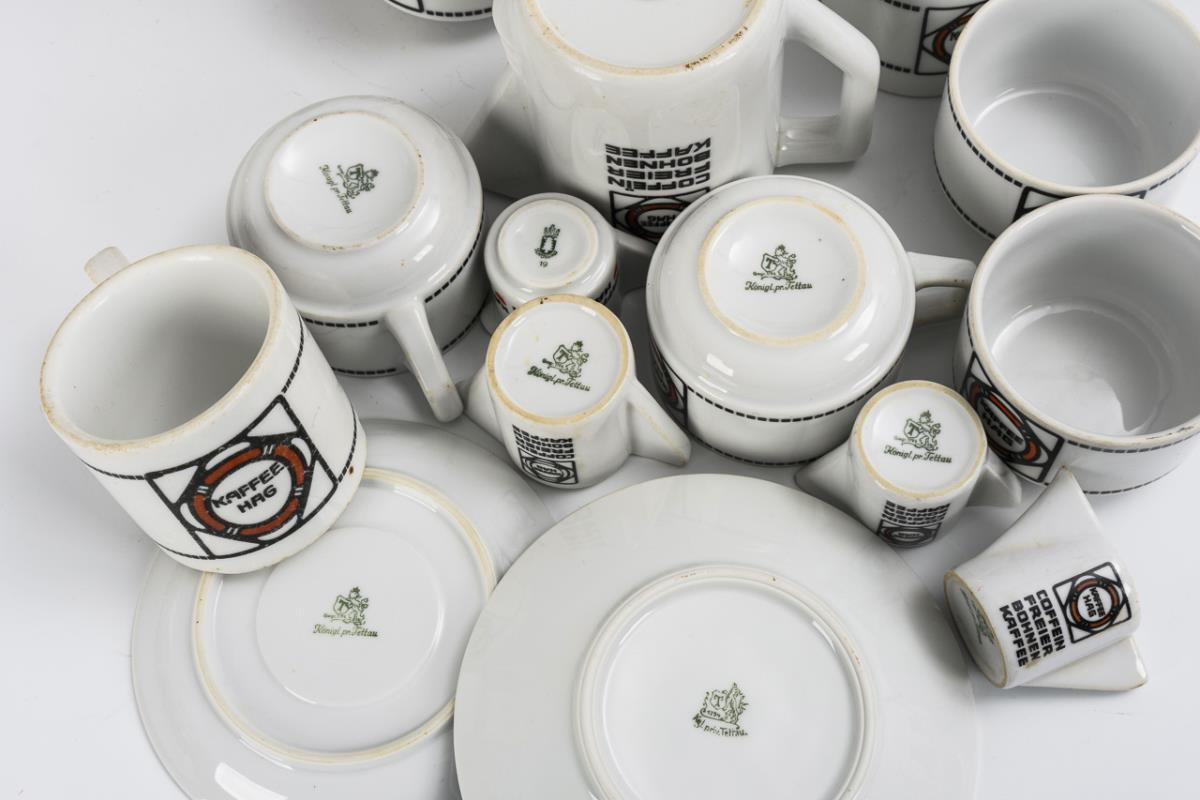 27 pieces of coffee tableware "Kaffee Hag" and 1 tin can. Tettau.