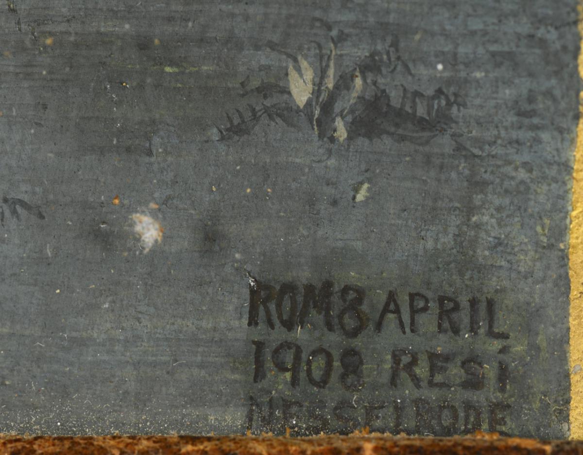 Oil/painting card. Signed lower right with the addition Rome. 8 April 1908.