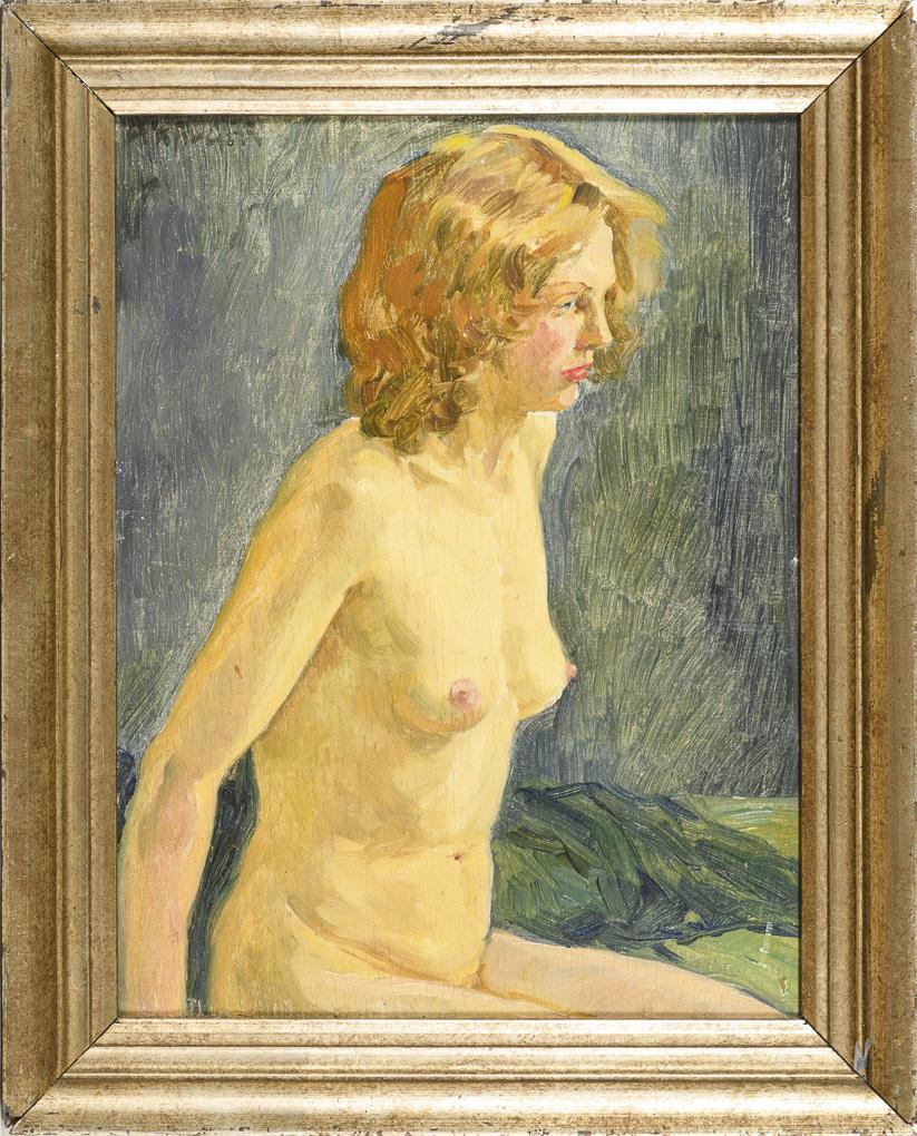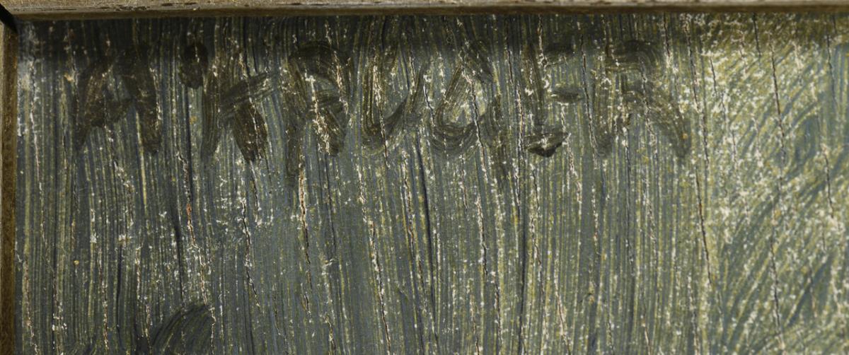 Oil/plywood. Signed upper left, verso inscribed with date of birth. 20th century