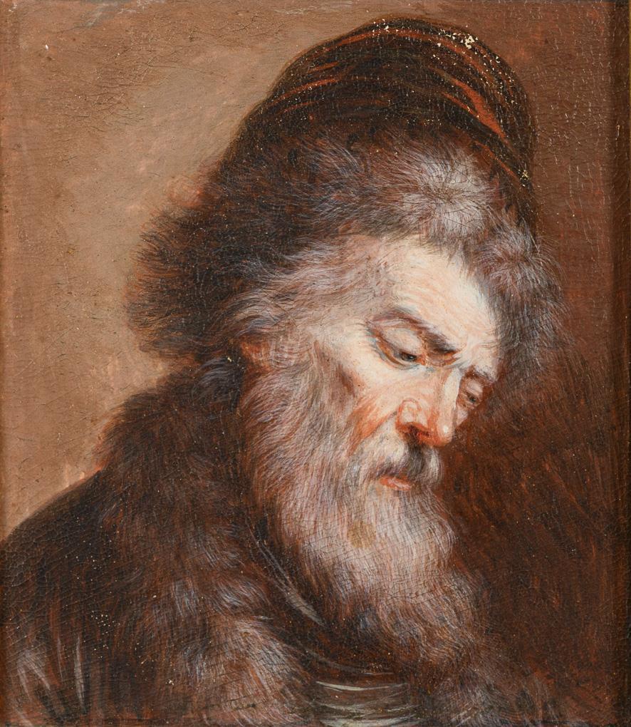 Two portraits of men in the manner of Rembrandt and the Baroque Old Masters. Fine color chips.