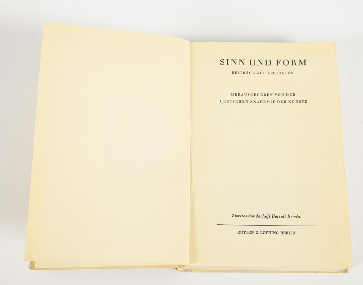 "Sinn und Form" Beiträge zur Literatur, 2. Sonderheft Bertolt Brecht", Rütten & Loening, Berlin (1959), 628 pages. / Friedrich Ahlers-Hestermann: "Stilwende - Aufbruch der Jugend um 1900", Verlag Gebr. Mann, Berlin 1941, 137 pages with numerous illustrations. "Supported by the kind assistance of the Deutsche Werkstätten, Hellerau near Dresden". / Paul Kramer: "Handbuch der Reklame für den modernen Geschäftsmann", Verlag von W. Violet, Stuttgart, 319 pages with illustrations.