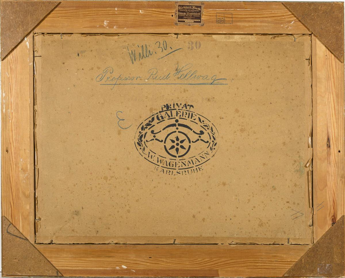 Oil/canvas/cardboard. Signed lower left, verso inscribed/titled with stamp of the private gallery W. Wagenmann Karlsruhe. 1913.