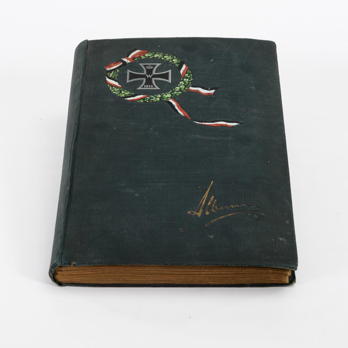 Sehr gehaltvolles Album, wohl gesammelte Karten, um 1910. Schwarzes Album mit Eichenkranz und Eisernem Kreuz. .