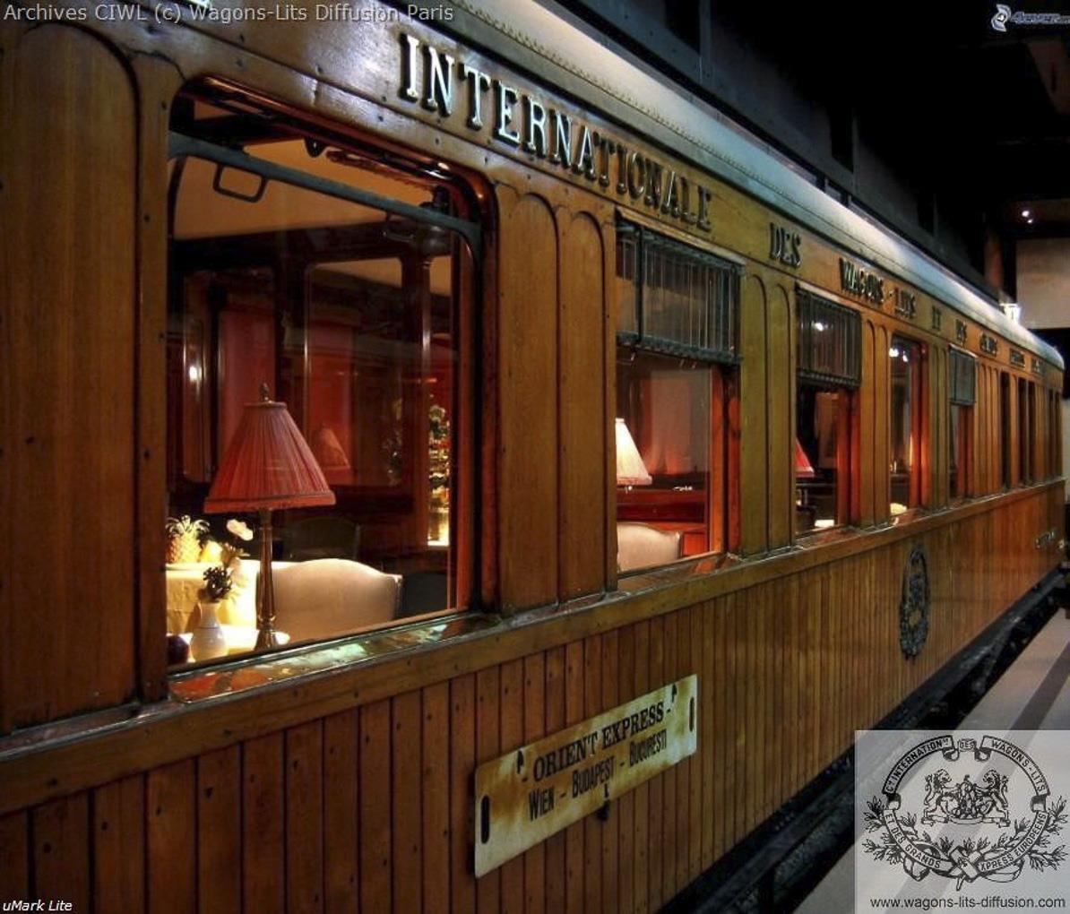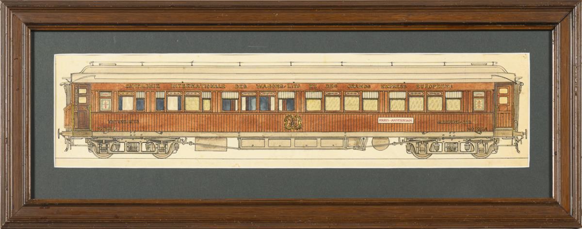 View of a sleeping car with the inscription "Compagnie Internationale des Wagons/Lits et des Grands Express Europeens", which was later part of the Orient Express. Slight creases.