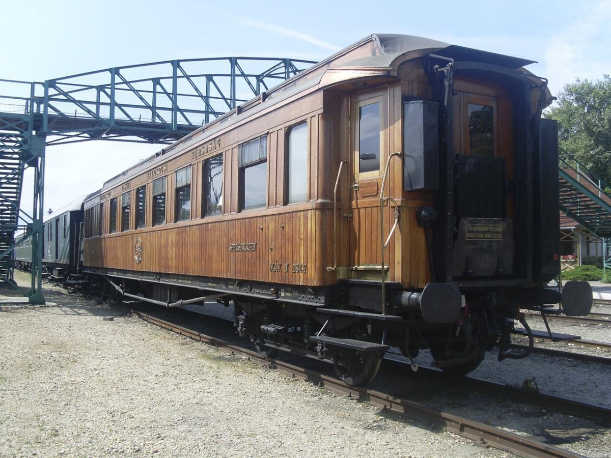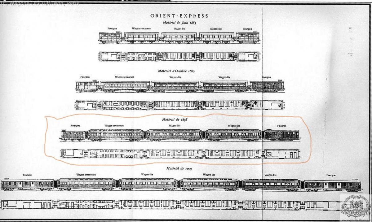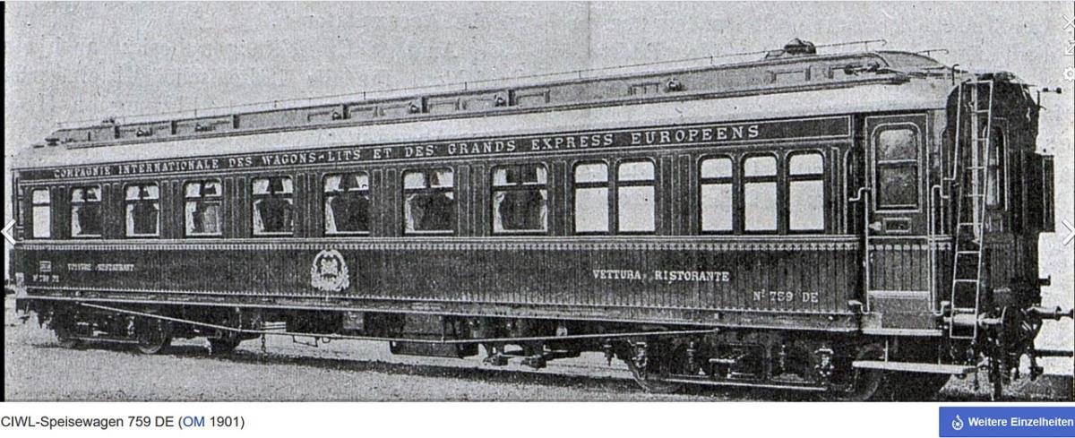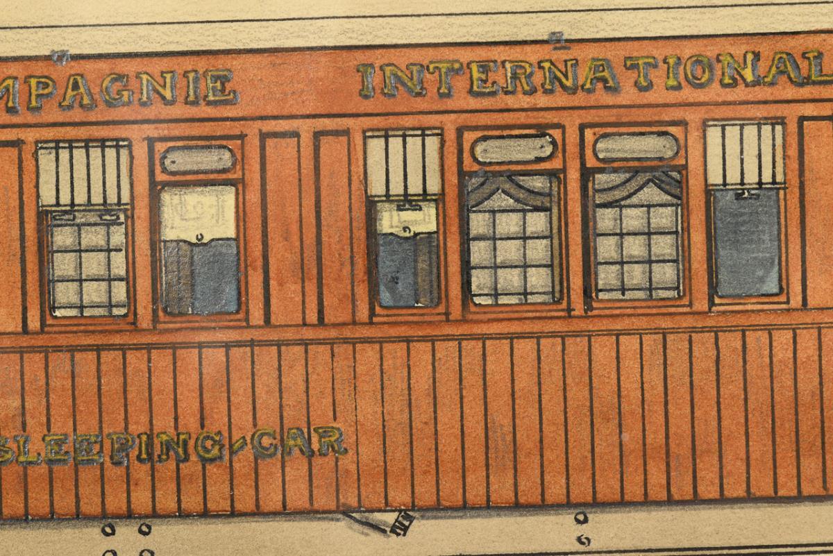 View of a sleeping car with the inscription "Compagnie Internationale des Wagons/Lits et des Grands Express Europeens", which was later part of the Orient Express. Slight creases.
