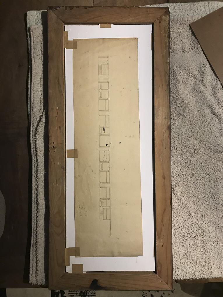 Passepartout cut-out 13 x 50 cm. Framed & behind glass : 28 x 64.5 cm (dark frame).