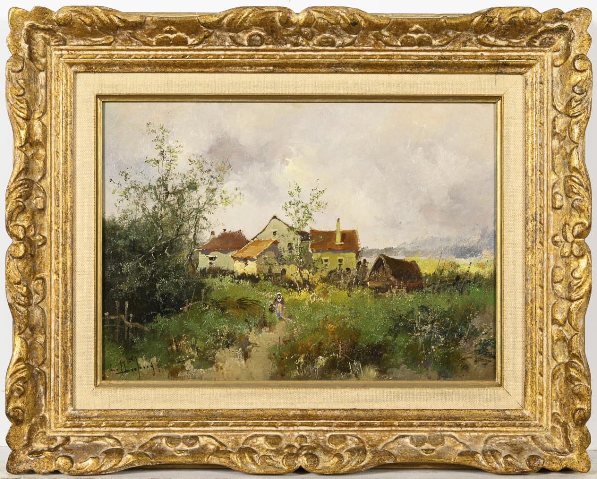 Oil/wood. Signed lower left with pseudonym "L. Dupuy".