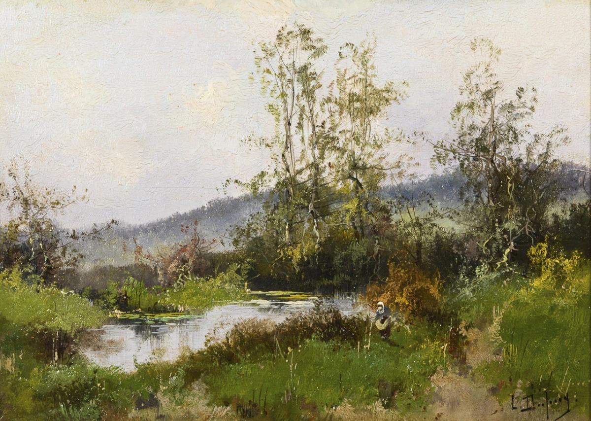 Oil/wood. Signed lower right with pseudonym "L. Dupuy".