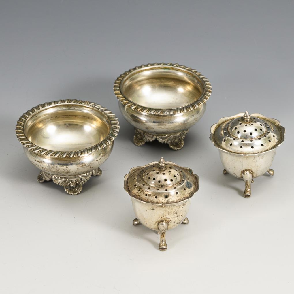 Metal, 2x silver-plated, 2x silver-colored. H 4 - 5.5 cm.