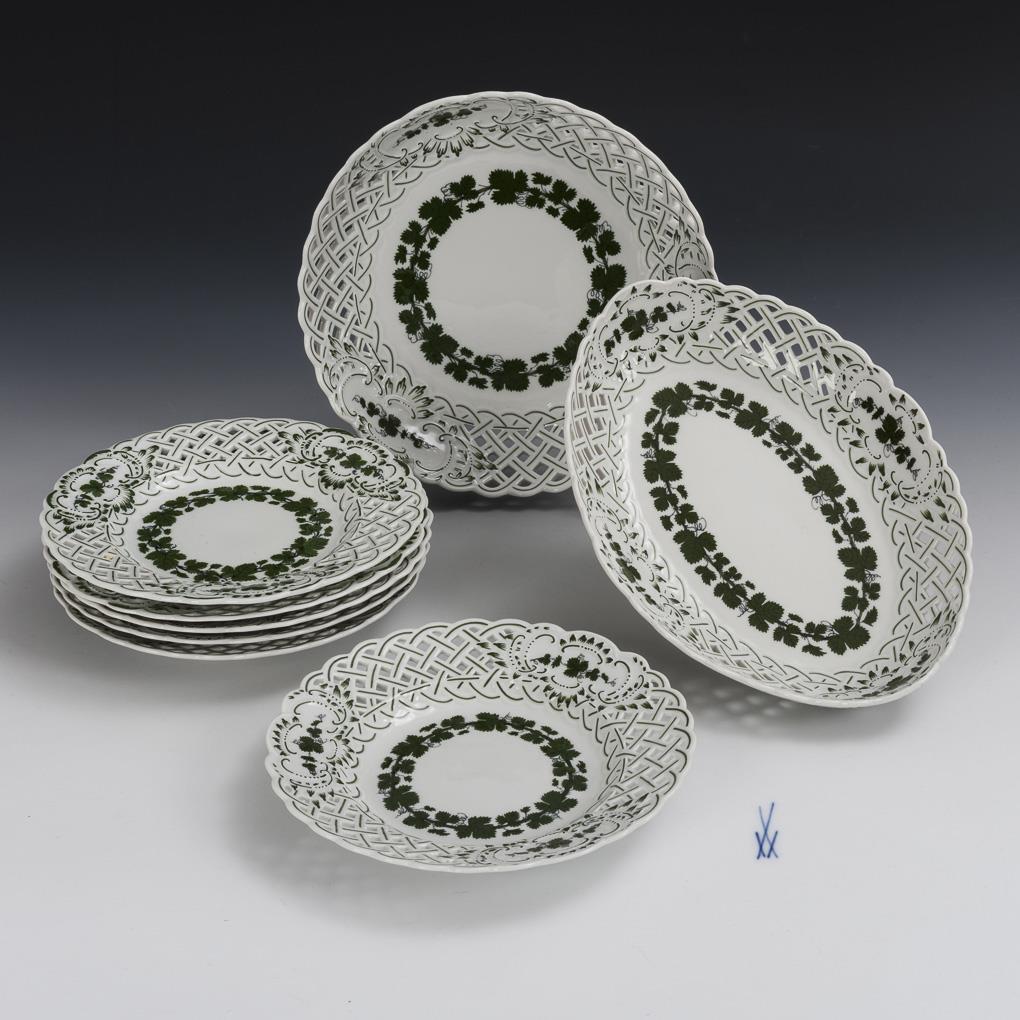 8 pieces openwork porcelain with vine leaf decoration. Meissen.
