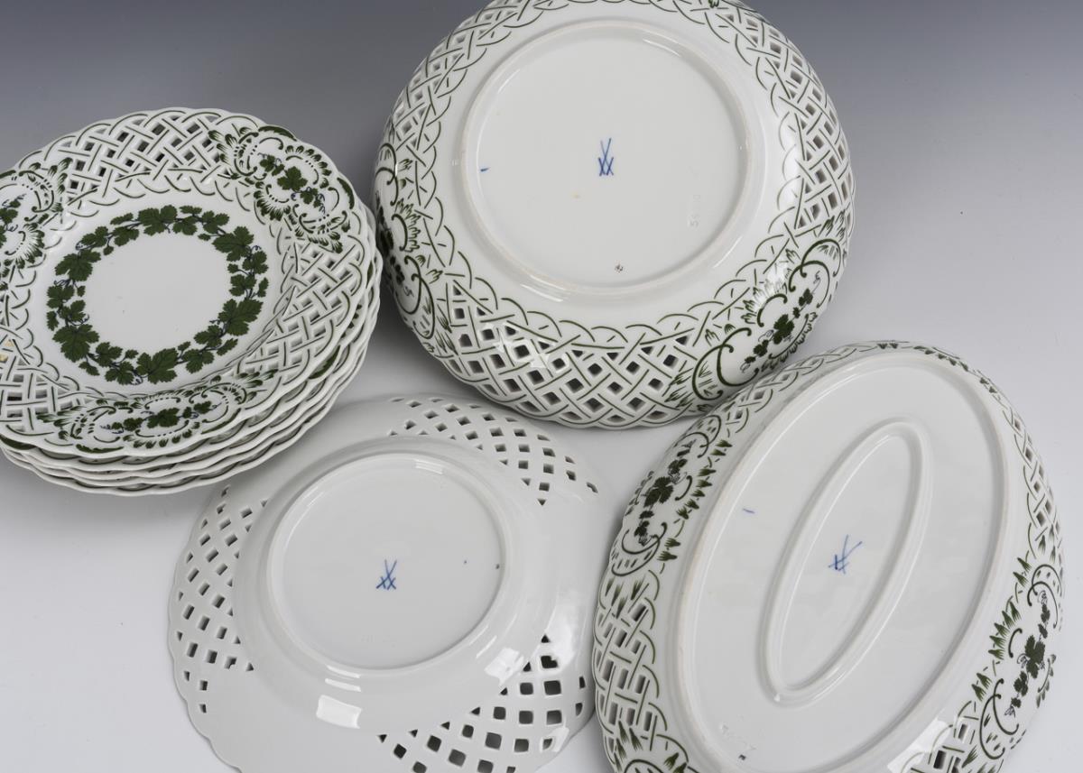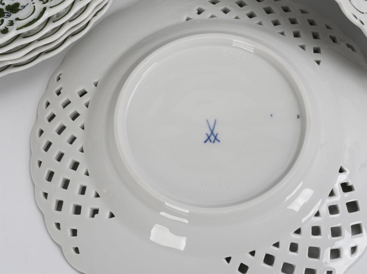 8 pieces openwork porcelain with vine leaf decoration. Meissen.