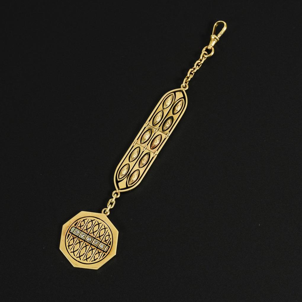 Checked 585 yellow gold. Length 14.3 cm. Suspension width 1.3 cm, Ø 2.8 cm. 19,4 g.