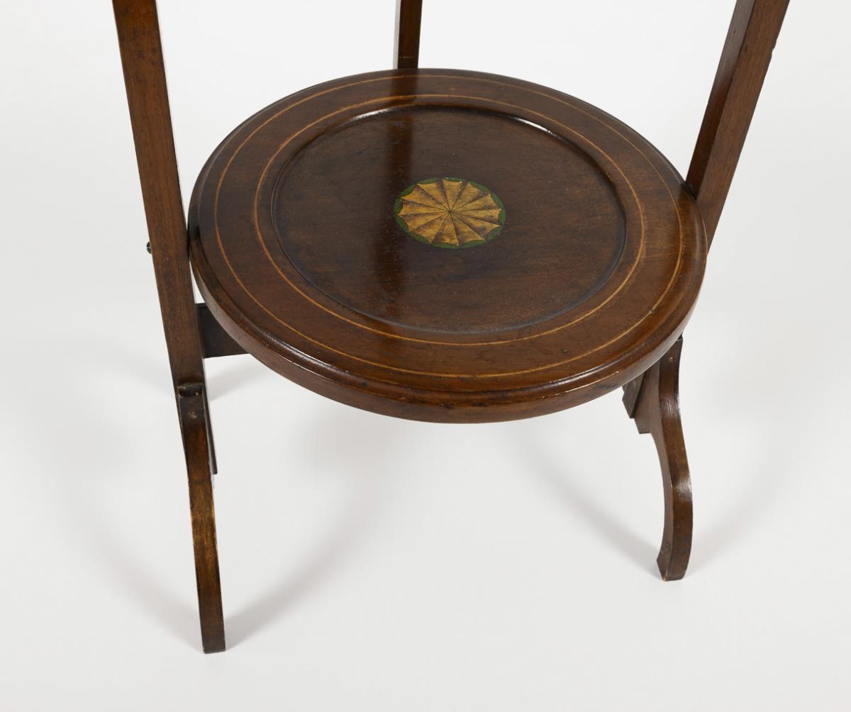 Portable and collapsible occasional furniture with light frame with bridge feet and 3 shelves; discreetly decorated with decals in the form of star inlays. Signs of age/use.
