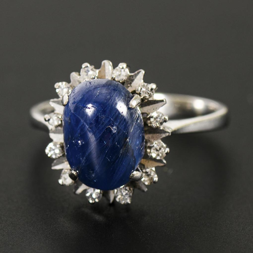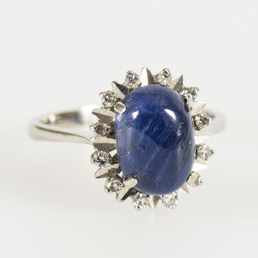 Ring with sapphire cabochon and diamonds.