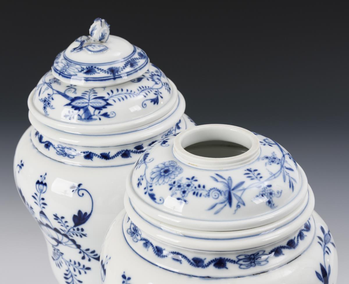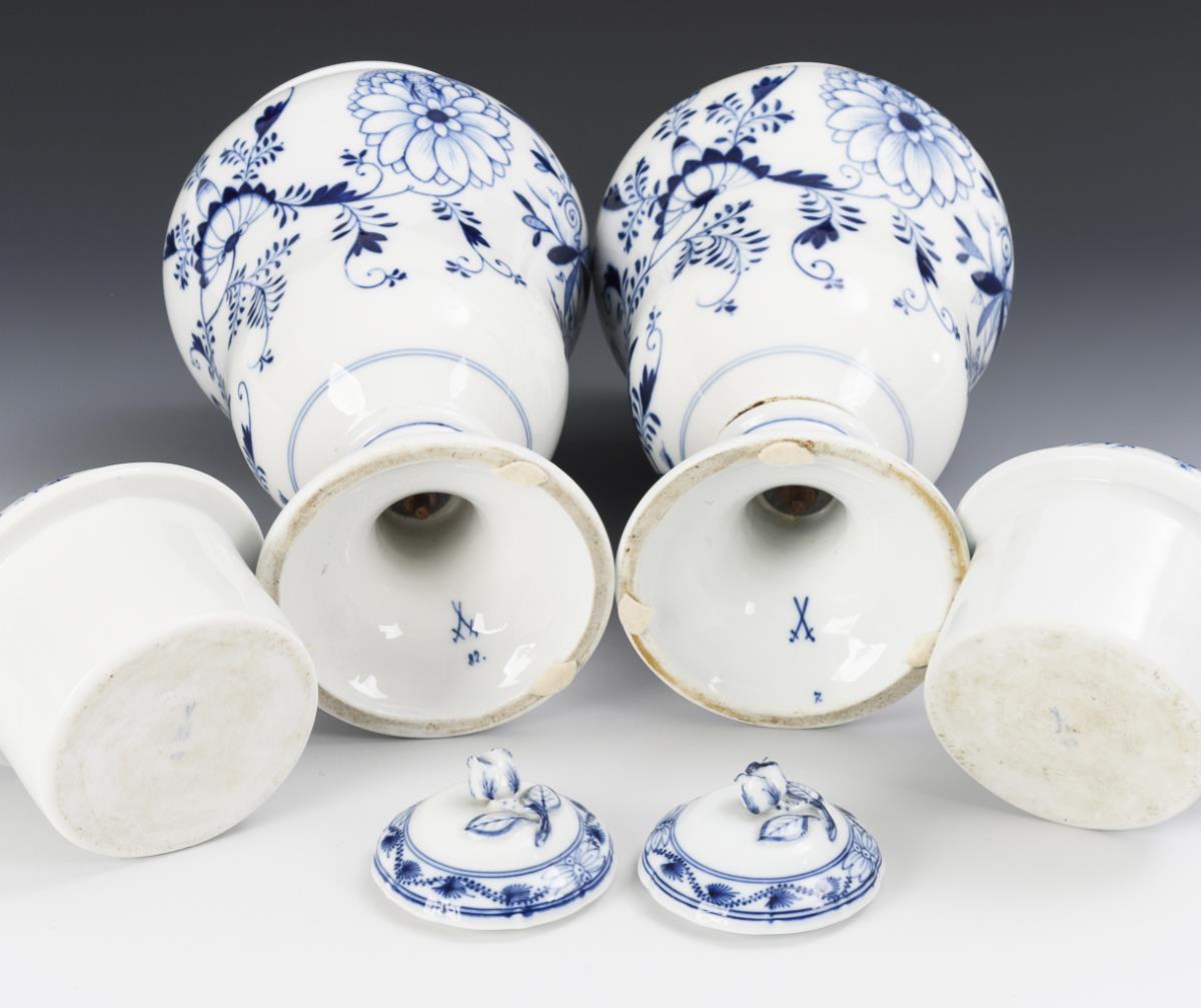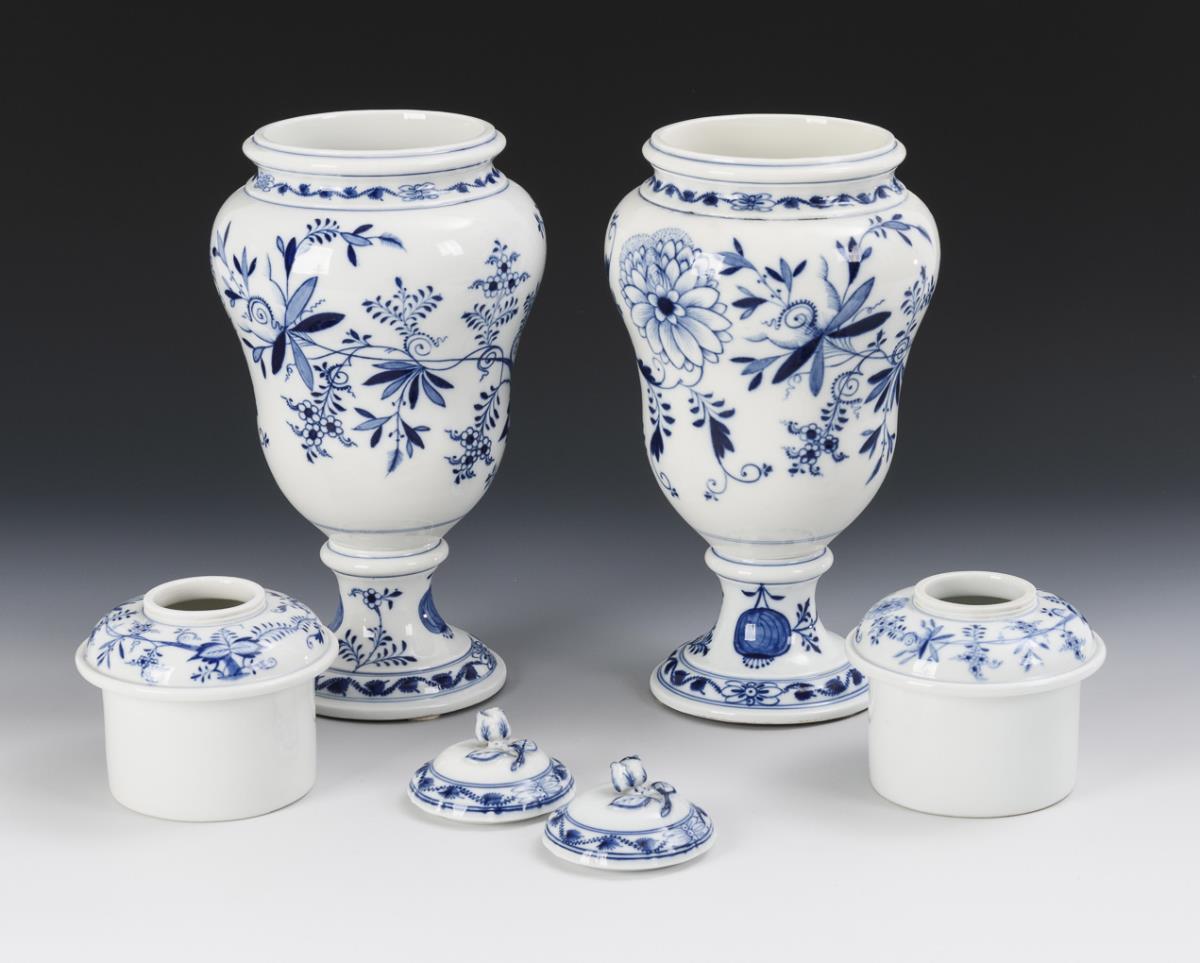 Pair of onion pattern lidded vases. Meissen.