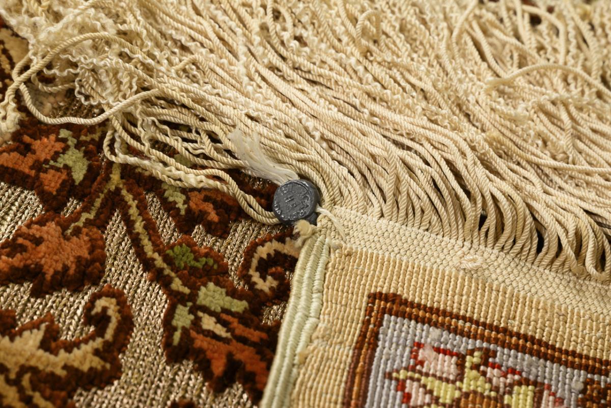 High-quality silk carpet with gold brocaded ground.