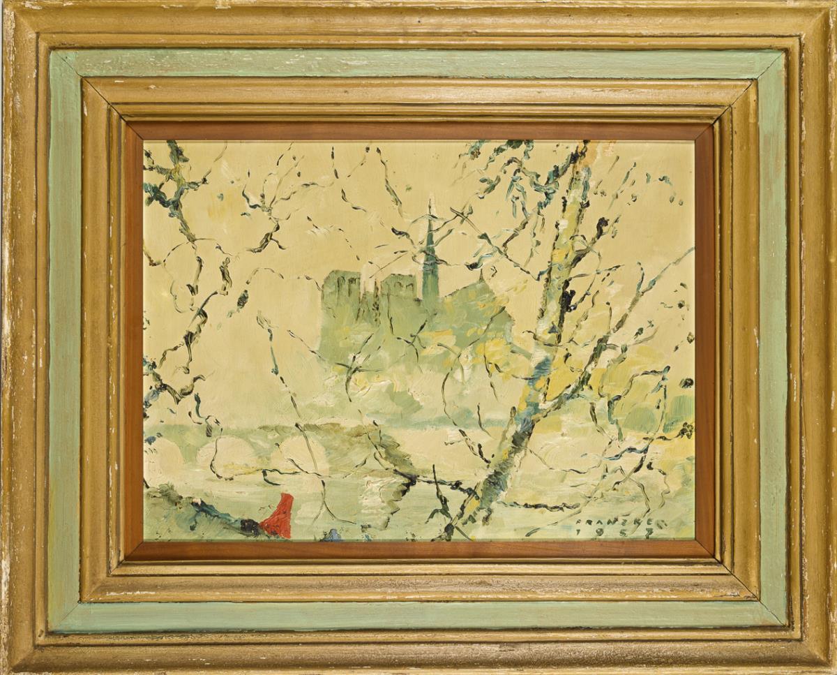 Oil/painting card. Signed lower right. 1957.
