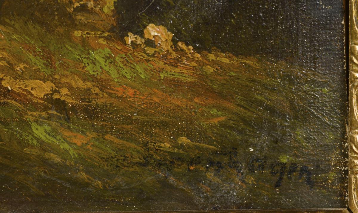 Oil/canvas/cardboard. Indistinctly signed lower right, inscribed/titled verso. Mid-19th century