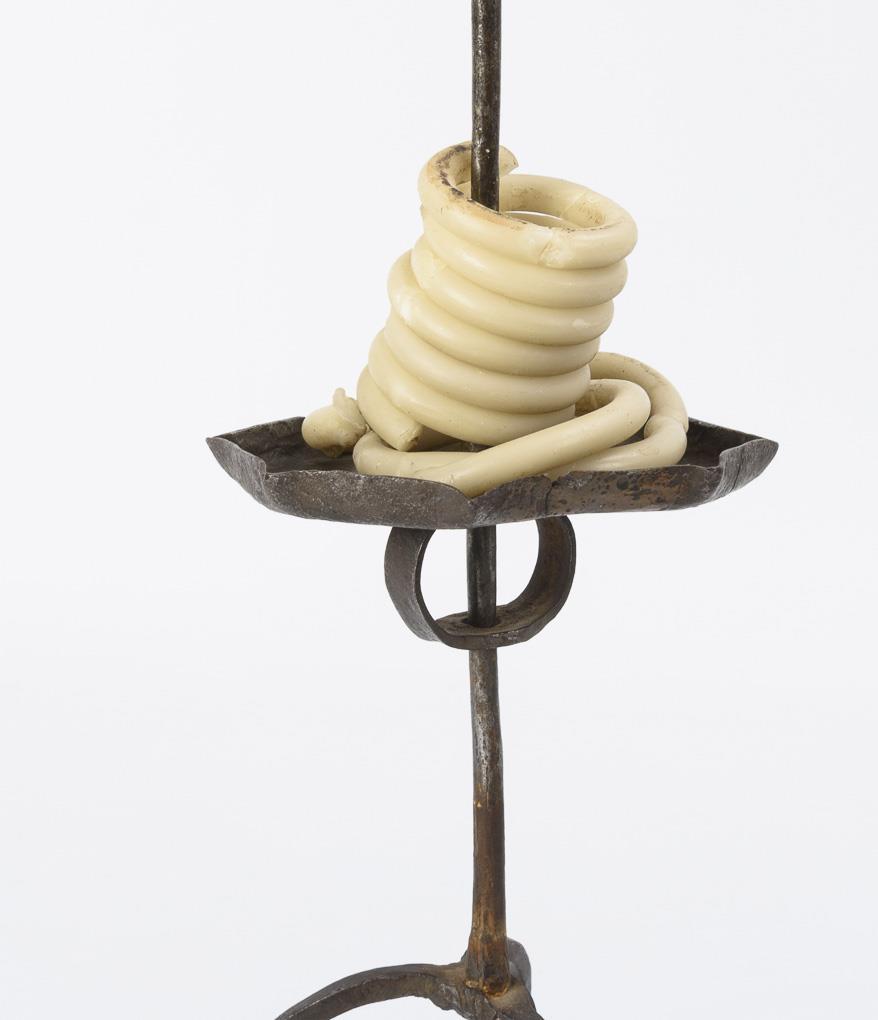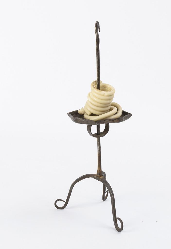 Tripod, on the central shaft with carrying hook height-adjustable wax plate with wax stick. Clamping scissors missing.