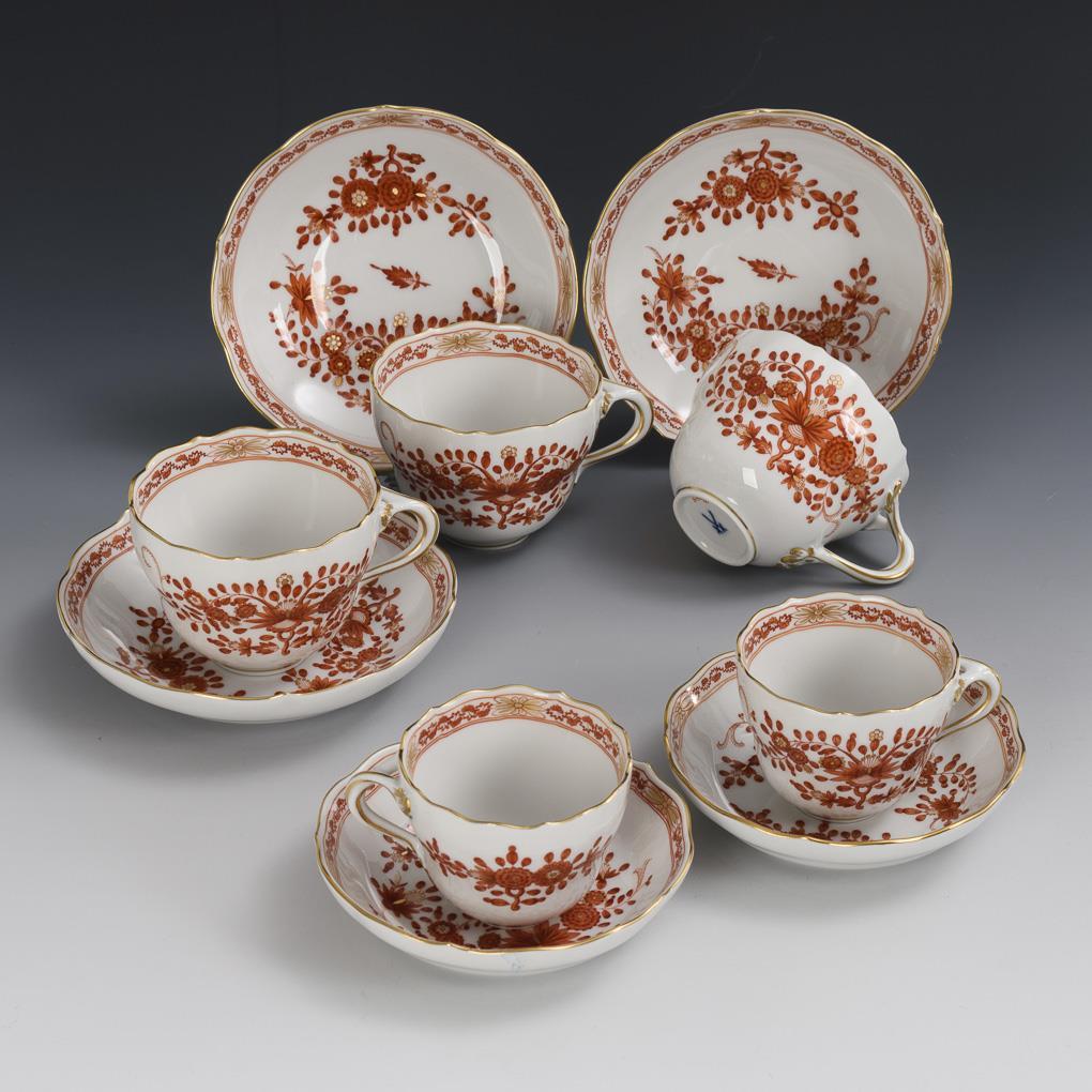 3 + 2 demitasse cups "Coral red Indian painting". Meissen.