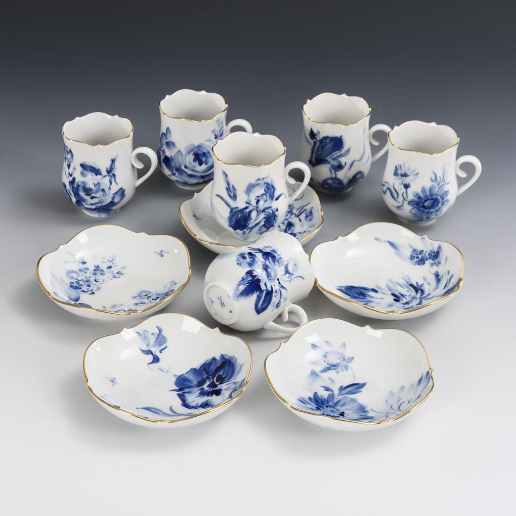 6 demitasse cups "Blue flower painting". Meissen.