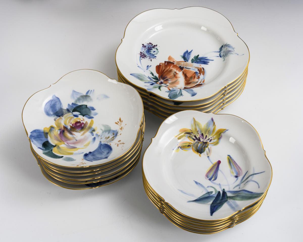Rare dinner service "Blue colorful flower", 34 pieces. Meissen.