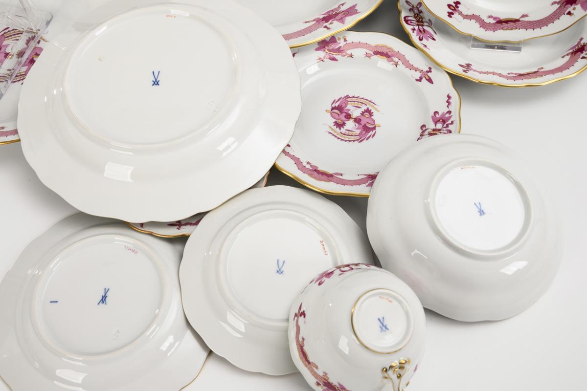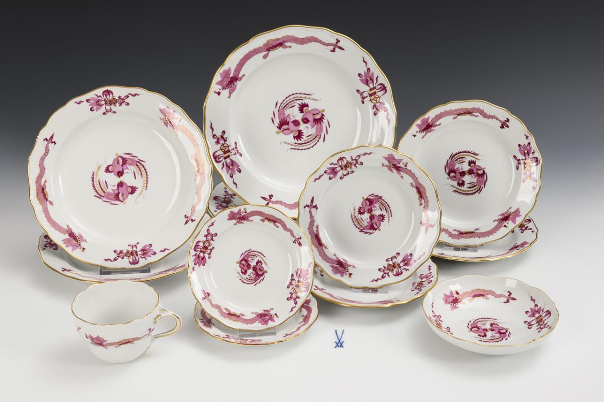 12 porcelains "Purple Dragon". Meissen.