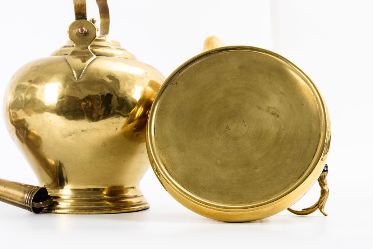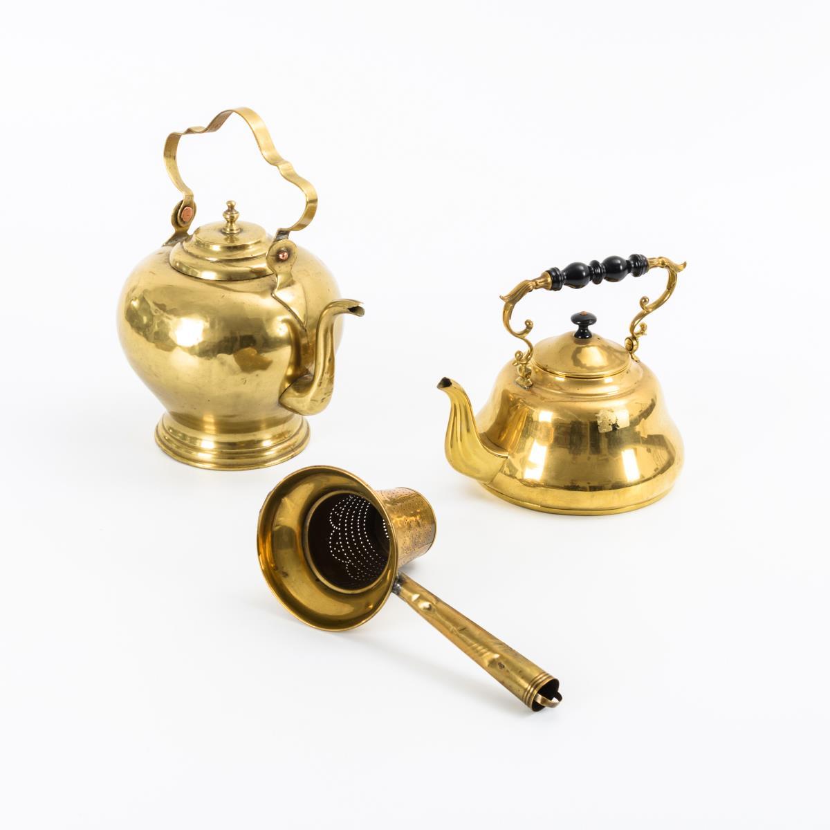 2 Messingkannen und 1 -sieb.
