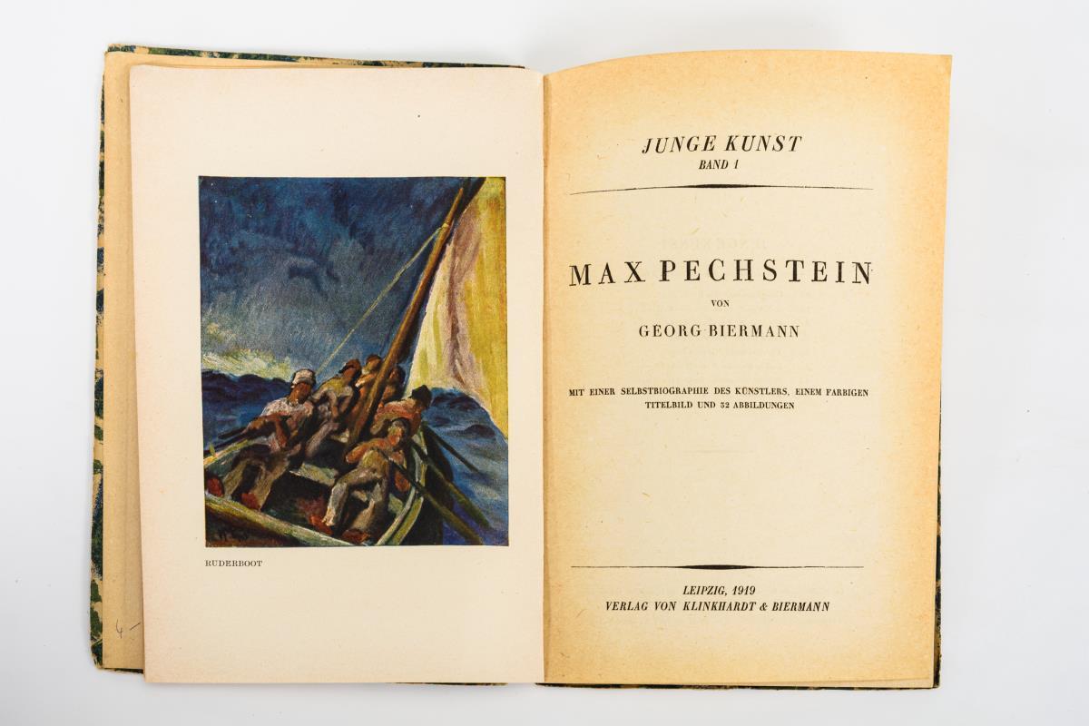 2 Sammelbände "Junge Kunst - Volksausgabe" mit autorisierten Kurzbiographien von Meidner, Campendonk, Uhden, Rosseau , Pellegrini sowie Coubine, Rohlfs, Schrimpf, de Smit und Schmid. Beide im Verlag Klinkhardt & Biermann 1923 erschienen. Als Einzelbände: Max Pechstein, 1919; Rudolf Grossmann, 1919 im gleichen Verlag erschienen. / Franz Landsberger: "Impressionismus und Expressionismus - Einführung in das Wesen der Neuen Kunst", Leipzig 1919, 44 Seiten und Abbildungen. / 2 Bände: "Graphiker der Gegenwart" zu Emil Orlik und Ernst Stein. Verlag Neue Kunsthandlung 1920. Alle Bände sind mit Abbildungen..