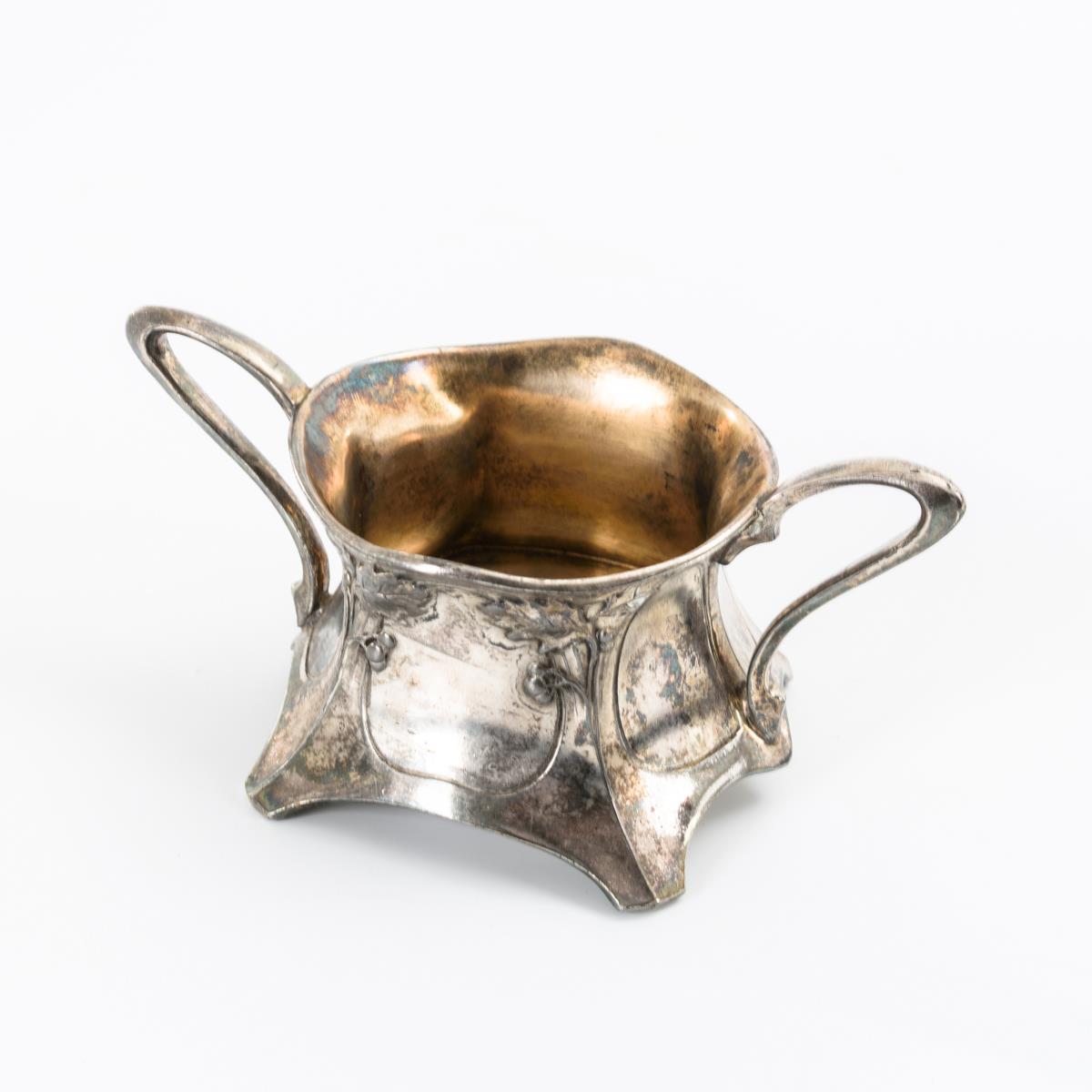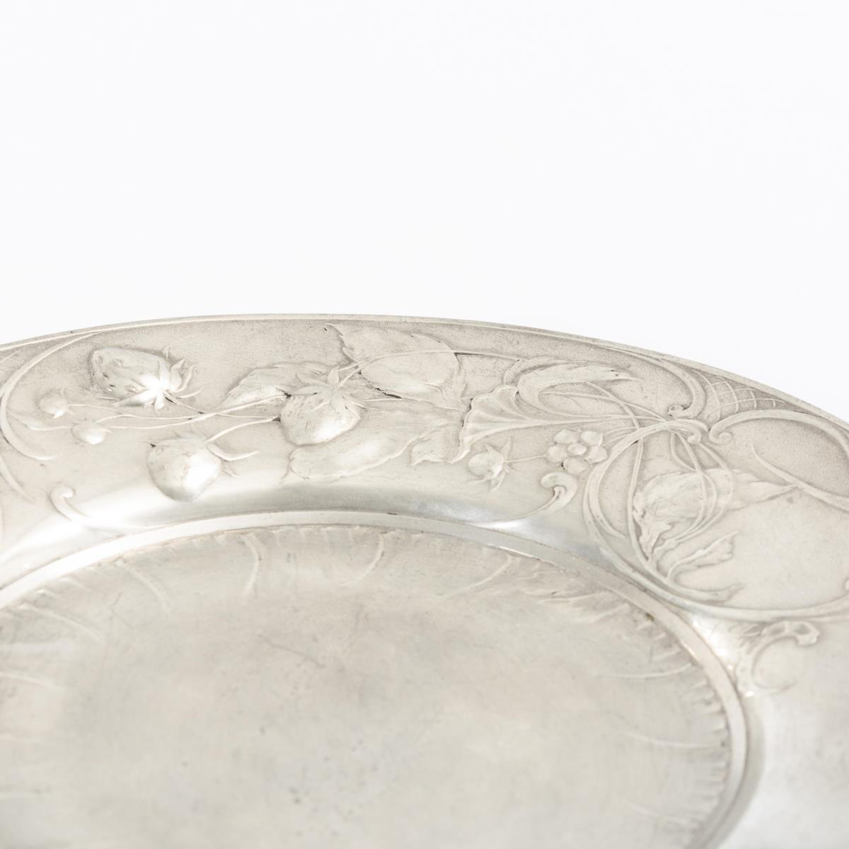4x Jugendstil-Zinn: Zuckerschale WMF und 3 Teller Kayserzinn.