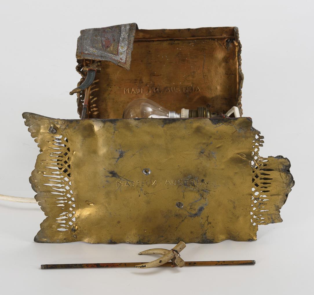 Cast metal with polychrome finish. Marked "Made in Austria" several times. 23 x 24 x 14 cm.