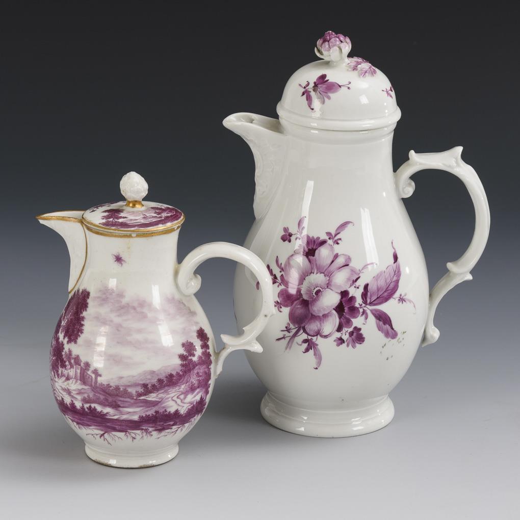 2 baroque jugs with purple painting. Fürstenberg.